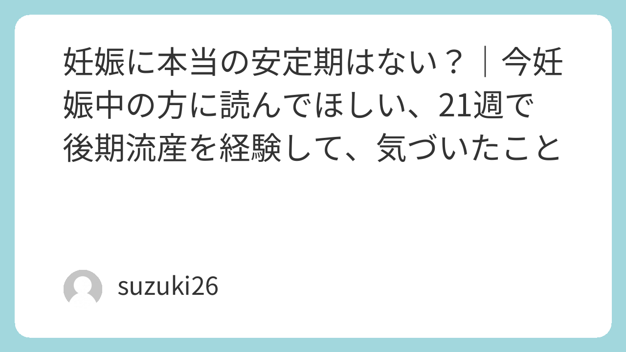 この記事では、21週で突然の後期流産を経験した私が、「安定期」という言葉について感じたことを書いています。今まさに妊娠中の方に、特に届いてほしいと思いながら書きました。